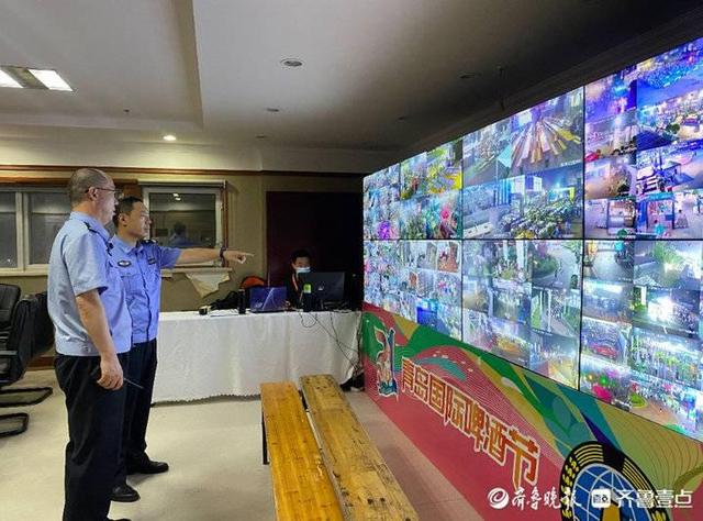 开幕式当天,崂山会场7楼的120个探头对会场实现了全覆盖。民警盯着视频,查看会场当天的实时监控,一旦发现情况就要及时调度警力应对,每天还要在会场里巡查两遍。组队巡城的崂山公安民警也成为人流中的一道亮丽的风景线,引来很多观众拍照。