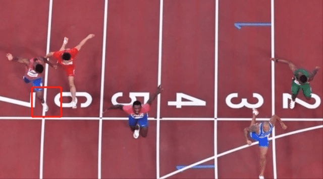 那是在女子4乘100米的预赛中,美国队的接力队员明显没有站在自己的接力区域内,被当场判定违规而取消决赛资格。