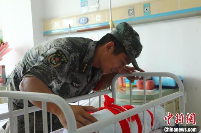 26日上午,穿着抗洪抢险时的迷彩服,范雷抱起刚刚出生的儿子。“等等,你等到了抗洪抢险回来的爸爸。”妻子韩晓晓打趣地说。
