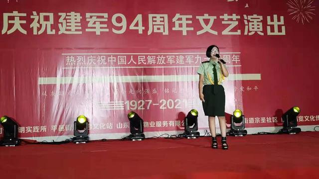 为庆祝人民解放军建军94周年,致敬最美军人,汲取奋进力量,近日,平邑街道新时代文明实践所、综合文化站联合平邑街道宗圣社区、天喜物业在福宽广场举行“庆祝建军94周年文艺演出活动。