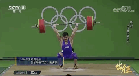 石智勇出战举重男子73公斤级决赛,抓起198公斤后,大喊两声“还有谁!”,最终以领先第二名18公斤的成绩拿下金牌,三刷纪录!