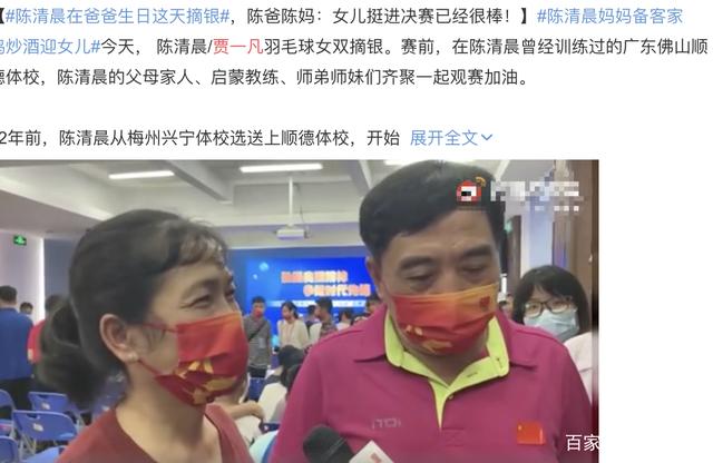 陈清晨父母得知女儿获得了银牌,也很开心,接受采访的时候大赞女儿进入决赛就很厉害了。据悉,陈清晨获得银牌当天,刚好是爸爸的生日,如此有纪念意义的一天,爸爸一定很为女儿感到骄傲。