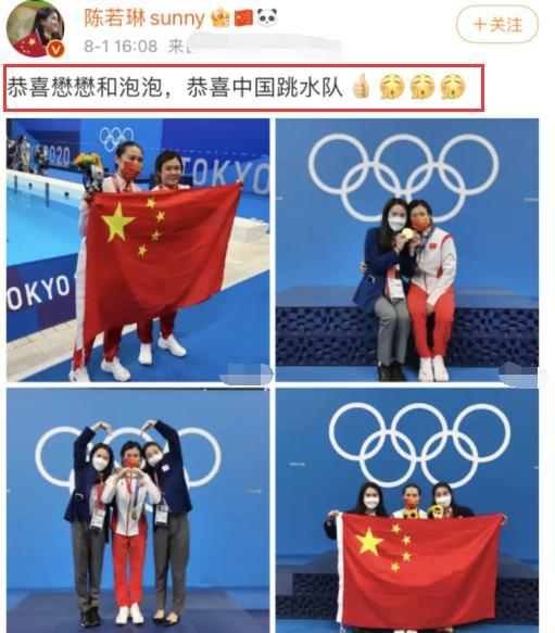在比赛结束之后,陈若琳立刻在微博上更新了一则动态,跟广大网友一起分享了她跟奥运代表队队员们的合照,并且还祝贺两人成功拿到了金银牌,也恭喜中国跳水队。短短的一行字里面不难看出这一刻,她的内心是无比的激动的。其实陈若琳比施廷懋还要小一岁,但是因为自己的身体原因不再适合参加比赛了,所以这一次是以裁判的身份来跟后辈进行合影的。其实,施延懋在得到金牌之后,展现出了一副不骄不躁的模样,笑得十分的甜美,并没有露出十分狂喜的表情。不难看出她对于这一次可以拿下金牌,是她对自己实力的自信,所以并没有感觉到多么的意外。王涵拿着鲜花站在一旁,被陈若琳记录下了这一个画面。