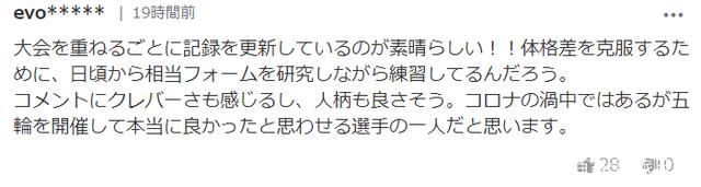 每次大型比赛都能刷新自己的记录,实在是太厉害了!!克服了体格的差异,可以看出来平时做了很大的研究和训练吧。从评论来看他很聪明,人品也很好。他是让我觉得在疫情当中召开的奥运会也真的很棒的选手之一!