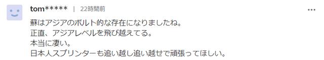 其实在众多称赞苏炳添的留言当中,我注意到一条留言,或许这个日本网友说中了日本人的心!