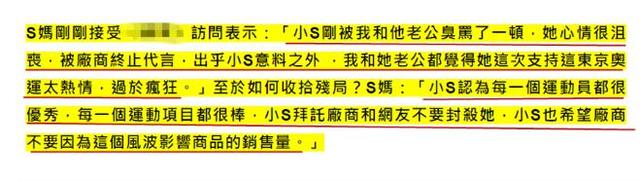 同时,S妈也透露,小S拜托厂商和网友不要封杀她,也希望厂家不要因为这个风波影响到商品的销量。