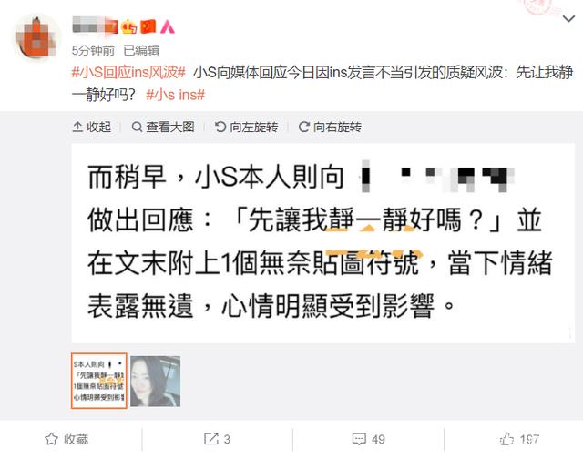 或许是近于舆论的压力,小S终于通过台媒回应表示「