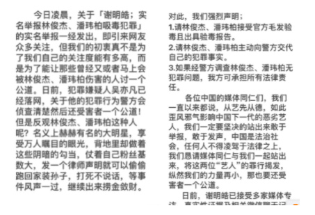 谁知最近传闻满天飞,8月2日凌晨1点左右,谢明皓工作室实名举报: