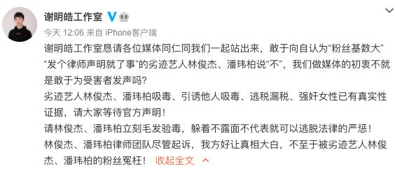 对于谢明皓口中未放实锤的吸毒强奸事件做出了强烈反击。