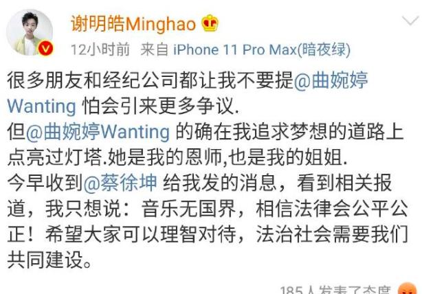 2020年曾发文为自己的恩师曲婉婷伸冤,