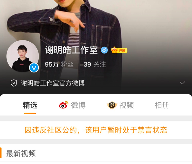 网络确实不是法外之地,自我认证为山东超时代文化艺术发展有限公司的谢明皓工作室账号刚刚因违反社区公约被禁言。