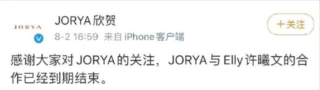 小S跟女儿一起合作过的品牌JORYA也宣布与小S大女儿许曦文的合作已经到期结束。