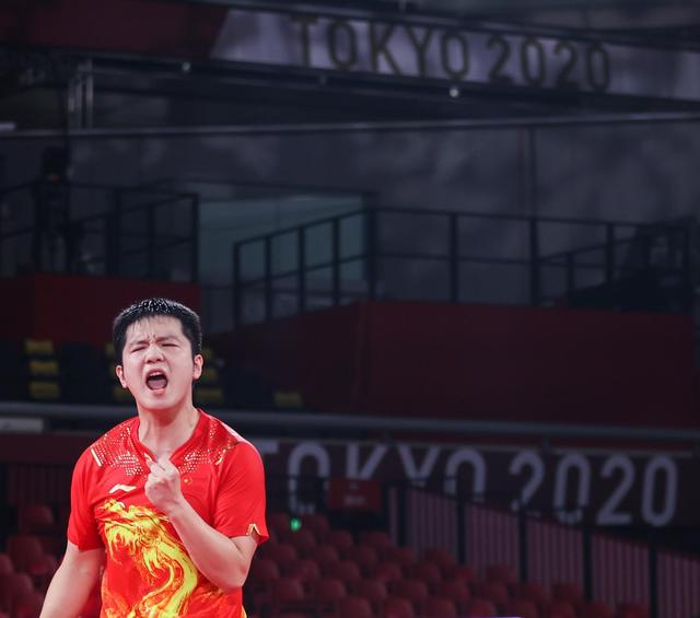 新华社照片,东京,2021年8月2日 (东京奥运会)(11)乒乓球——男团:中国队晋级四强 8月2日,中国选手樊振东在比赛中庆祝得分。 当日,在东京奥运会乒乓球男子团体四分之一决赛中,中国队以3比0战胜法国队,晋级四强。 新华社记者 杜潇逸 摄