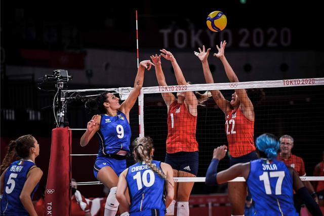 2021年进行的“2020东京奥运会”,北京时间8月2日中午,女排项目B组末轮意大利女排与美国女排上演强强对话。双方都是三个胜场,此役胜者可确保进入小组前二,即可避开A组的巴西和塞尔维亚,四强席位基本就坐稳。经过精彩角逐,双方鏖战五局,美国女排以3-2险胜,锁定小组前二。意大利女排极可能落位小组第三,1/4决赛大概率就要碰到塞尔维亚。