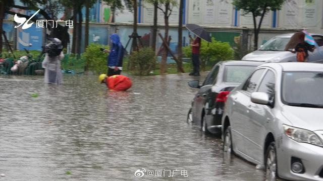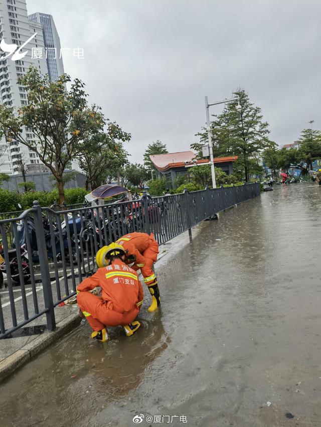 【[话筒]警情通报!目前#厦门暴雨救援已疏散75人# 】8月2日下午三时,#厦门发布暴雨红色预警信号# ,集美区遭遇短时强降雨,地铁杏锦站1A出口处路面严重积水。接到报警,厦门市消防救援支队迅速调集杏林消防救援站2车13名指战员携带机动消防泵、橡皮艇、救生圈、铁铤等救援装备赶赴现场。由于排水不畅,现场积水已没过成年人小腿,指战员迅速协助地铁安保人员搬运沙袋,对进站口进行围挡;打开井盖,清理路面杂物,并在排水通道附近拉起围挡,引导群众绕行危险路段。#厦门这些积水路段请绕行#