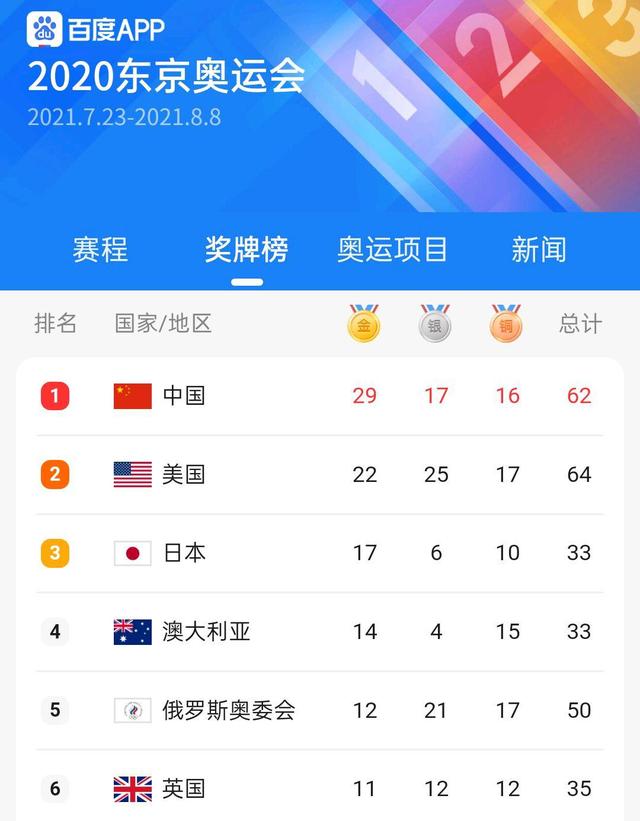 相信随着我们中国队位列金牌榜第一名,我相信我们还可以获得更多的金牌和奖牌。为我们中国队摇旗呐喊,中国队加油!你们是最棒的!