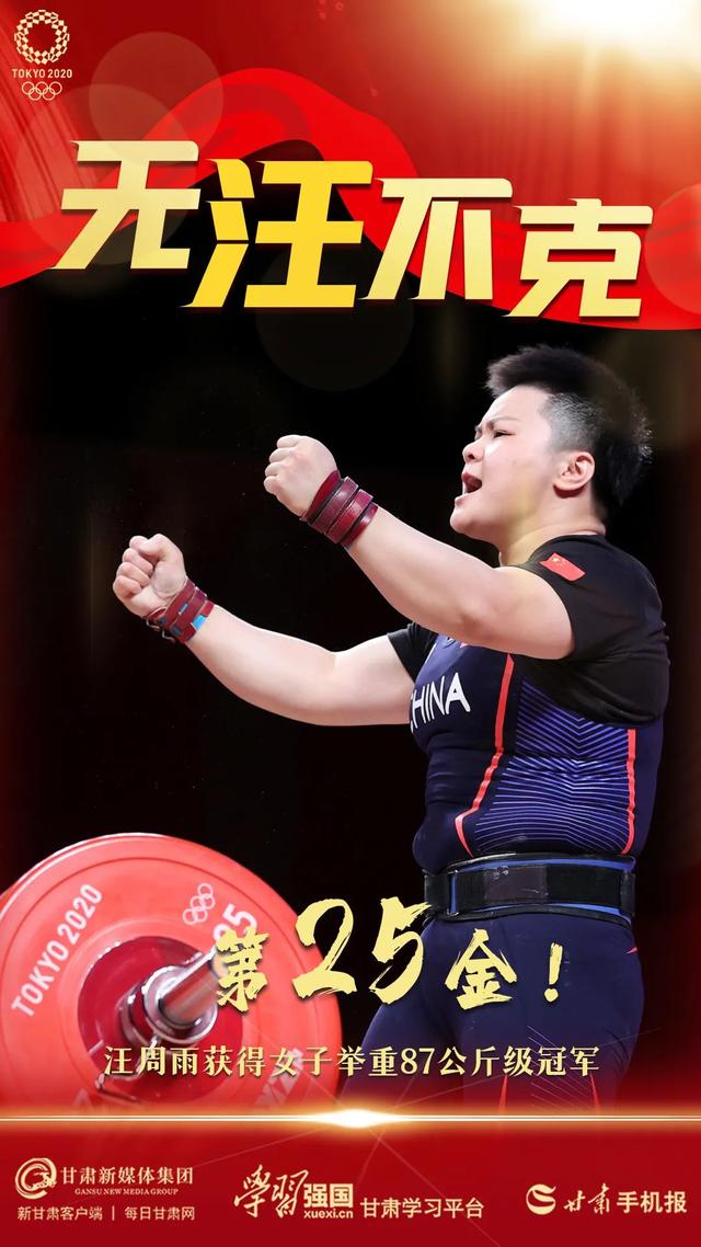 8月2日,汪周雨获得东京奥运会女子举重87公斤级冠军!
