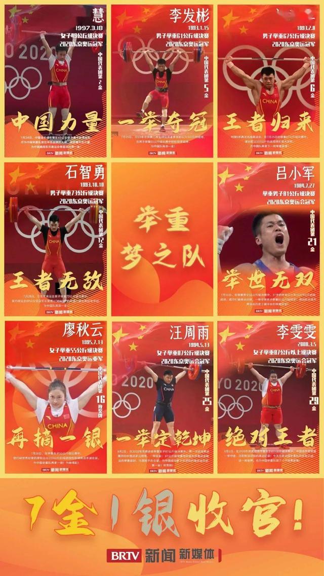 正如李雯雯写的那样,中国举重这支梦之队在本届奥运会上,获得7金1银,用实力告诉世界什么是“中国力量”!其中中国男子举重获得全部金牌,女子举重斩获三金一银。