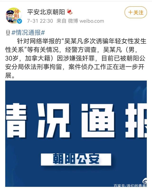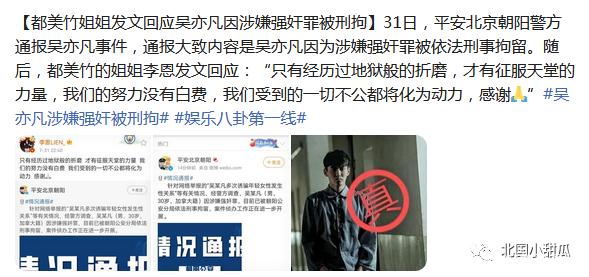 【摘要】 北京朝阳警方通报:吴亦凡涉嫌强奸,目前已被刑拘!不得不说,这一波外媒手速真的快!从前他在中国捞金,现在竟世界驰名了吗?消息一出,各
