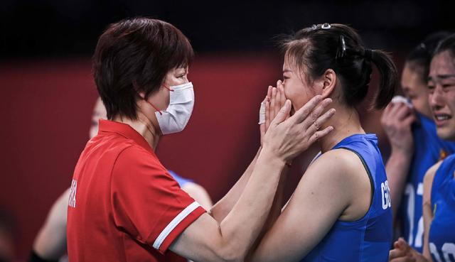 首次参加奥运会的李盈莹、姚迪以及张常宁等奥运冠军都哭成了泪人,朱婷和郎导也是哭红了双眼。