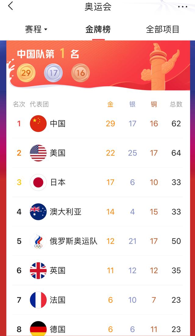 北京时间8月12日,东京奥运会第十天,中国代表团今天收获满满,获得5枚金牌的好成绩,目前金牌榜排名保持第1名,总奖牌榜第2名。