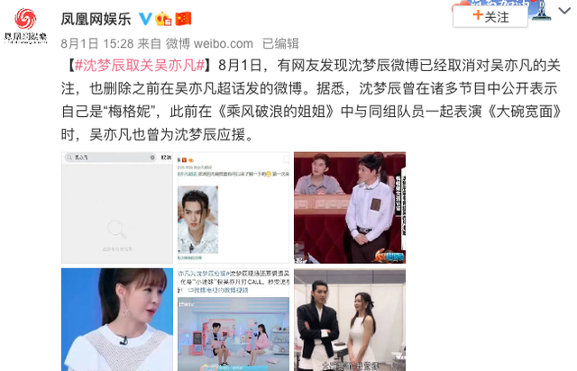 甭管以前多喜欢,沈梦辰现在也删掉了所有关于吴亦凡的消息。