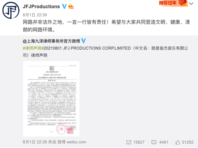 只不过吴亦凡事件之后,大众对明星律师函的信任度断崖式下跌,只能希望你们好自为之吧。