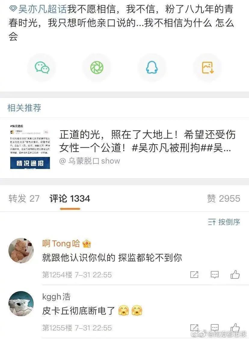 饭圈的乱象由来已久。这一次在吴亦凡事件上又进行了一次集中的展现。在警方发布消息之后,吴亦凡的粉丝们马不停蹄地在网络上开始洗刷,又掀起了攻击相关受害者的一波高潮。媒体透露,部分粉丝甚至建群商讨怎么救吴亦凡,各种惊悚言论刷屏于各类社交平台。