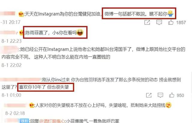 明星们都喜欢追奥运会,也喜欢看到本国的选手,为自己国家争得荣誉,小S也不例外,导致她的“马甲”掉光,让内地网友们看到了她的真面目。