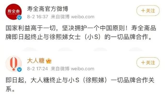 随着讨论这件事情的人越来越多,好像事情超出了小S,可以承受的范围,一天之内相继有4个品牌,都随后终止了和小S的代言工作。