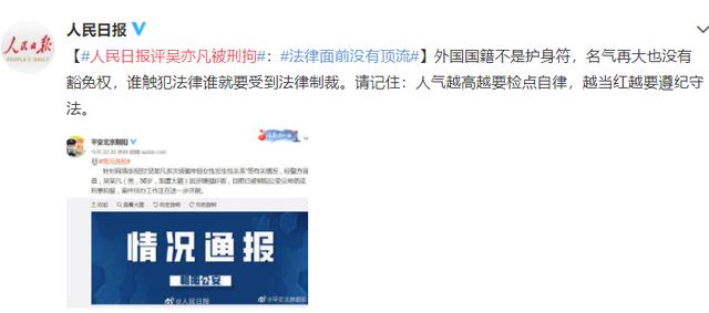 随后,人民日报发评论称法律面前没有顶流,中国禁毒网发布了朝阳平安的情况通报,中央政法委也针对此次事件发声。