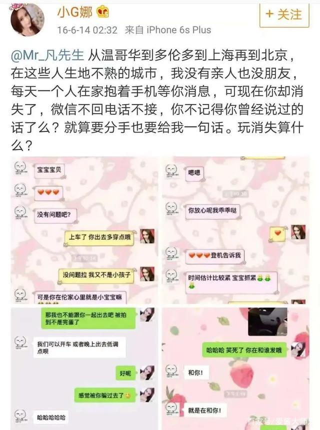 早在2016年6月14日,网红小G娜就曾曝光与吴亦凡的聊天记录,称吴凡“就算分手也要给我一句话,玩消失算什么?”随后,面对吴亦凡工作室关于“女友纯属虚构”的声明,小G娜再次爆出与吴亦凡的亲密照片。紧接着几小时内,数名女网友也纷纷爆料声称自己和吴亦凡约过。