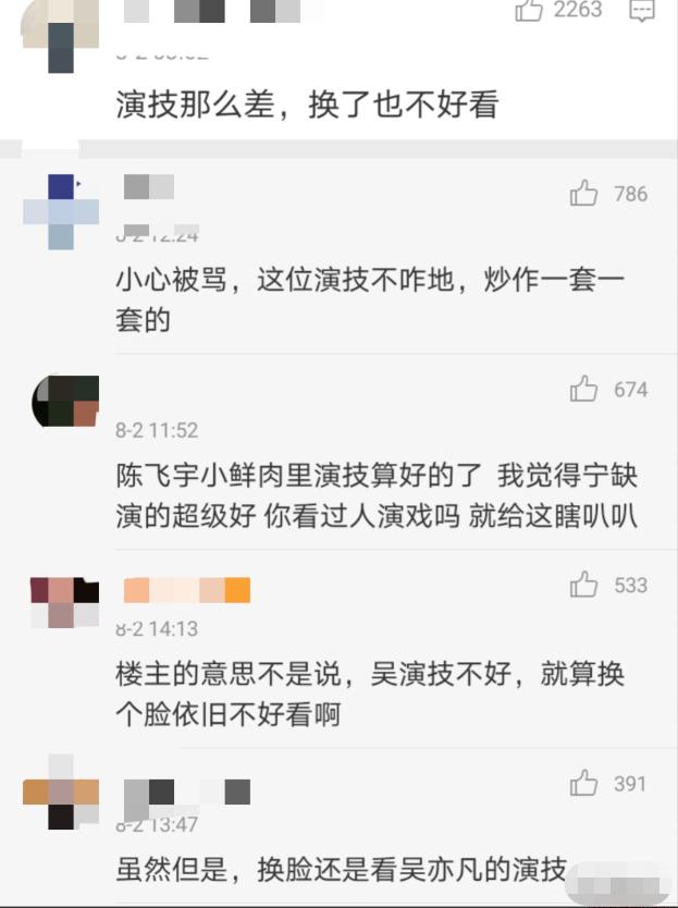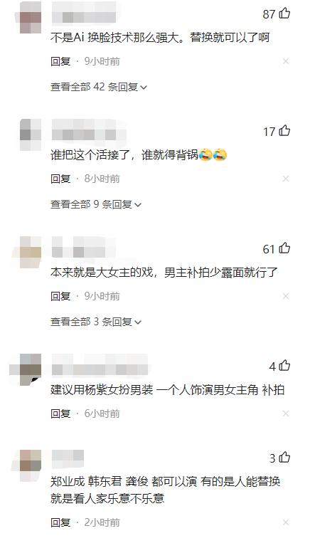 还有的表示可以直接给吴亦凡打马赛克,反正都是奔着杨紫看的。还有的表示这是大女主剧,男主补拍少露面就行。