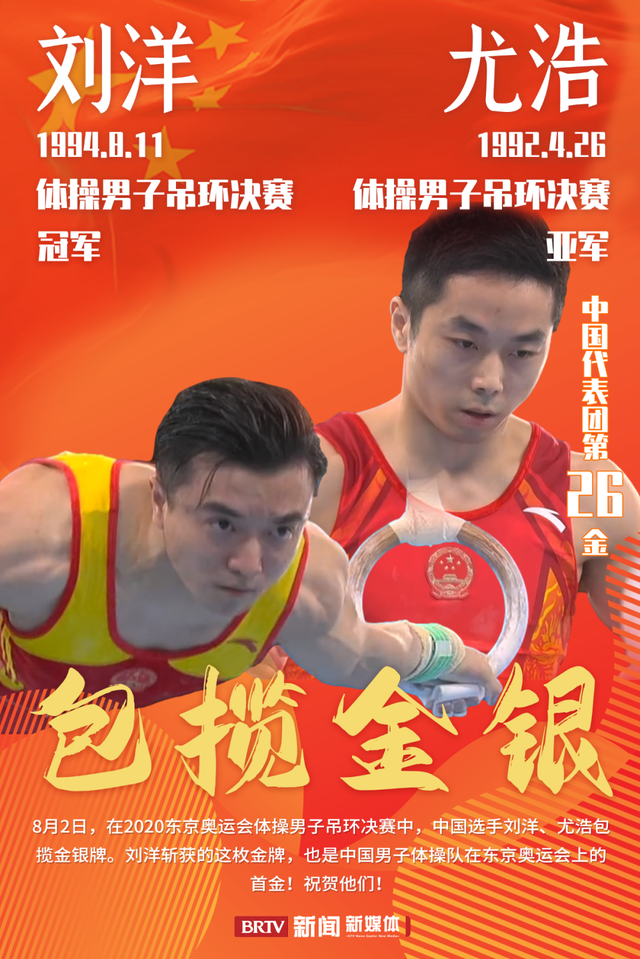 26金:体操男子吊环刘洋尤浩包揽金银牌