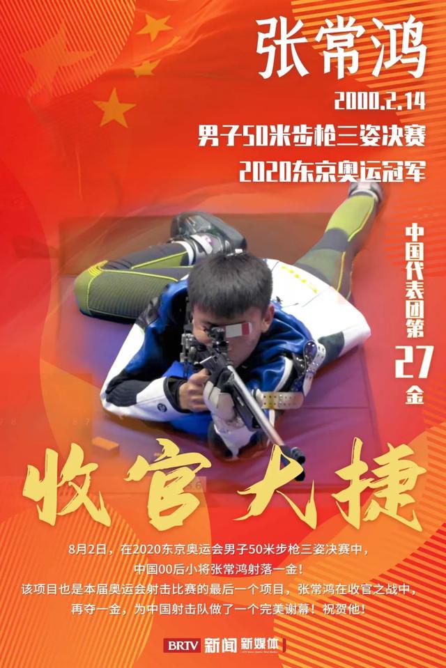 还没从包揽金银的喜悦中缓过神儿来,射击赛场上又传来好消息。东京奥运会射击比赛最后一个比赛日中,中国00后小将张常鸿获得东京奥运会男子50米步枪三姿金牌,并创造了新的决赛世界纪录。这是中国代表团在此次奥运会中获得的第27枚金牌。