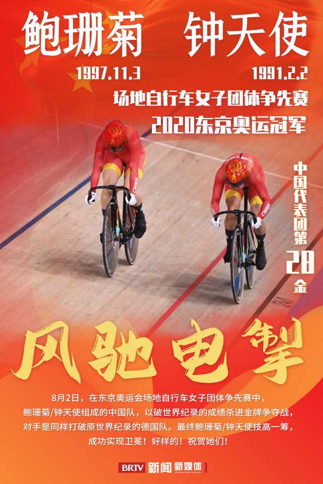 北京时间2日,在东京奥运会场地自行车女子团体争先赛中,由钟天使和鲍珊菊组成的中国队以31秒895夺得冠军。这是中国代表团的第28金。