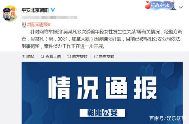 如今,这句话也成了吴亦凡的小花,在北京警方的一则通告出来后,吴亦凡因为涉嫌“强奸罪”而落网,目前被刑拘,案件还在进一步的调查中。