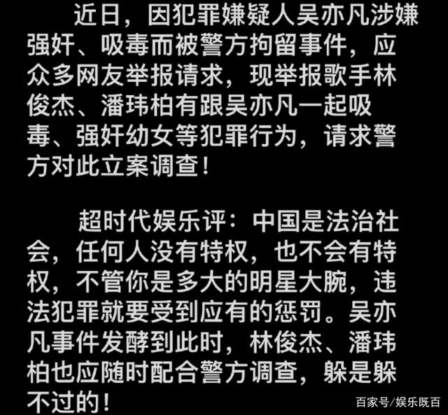 吴亦凡事件持续发酵,很多艺人都被拉出来“批斗”了一番,跟吴亦凡关系不错的林俊杰被热议,现在又多了一个潘玮柏。