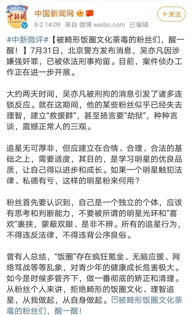 这次对吴亦凡的“重击”,极有可能是国家肃清娱乐圈乱象的第一步。国家对于娱乐资本的管控与治理,人民大众向来都是拍手叫好的。这次吴亦凡被刑拘,广大网友的评论,都说明了这一点。因为,大家都希望拥有一个干净、向上的社会环境。