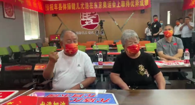 赛前,尤浩的爷爷和奶奶为尤浩加油!