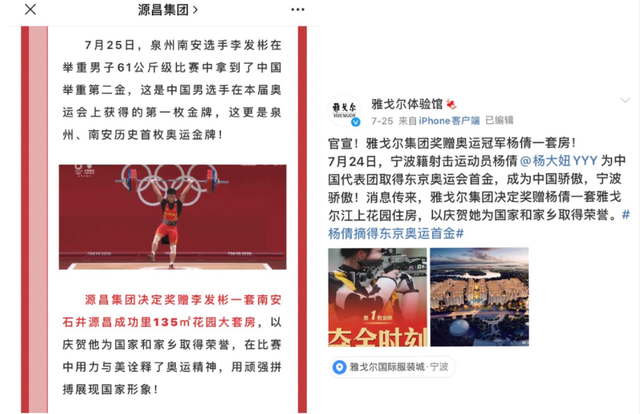 而近期除了雅戈尔,地产公司源昌集团也宣称,决定奖励泉州南安选手李发彬一套南安石井源昌成功里135㎡花园大套房。在7月25日李发彬曾在举重男子61公斤级比赛中,拿到中国举重第二金。