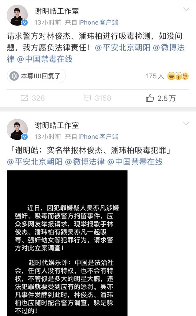 多说一句,之前林俊杰、潘玮柏、周杰伦关系都比较近,希望不要牵扯到他,坐等谢明皓所说的周五大瓜来临。