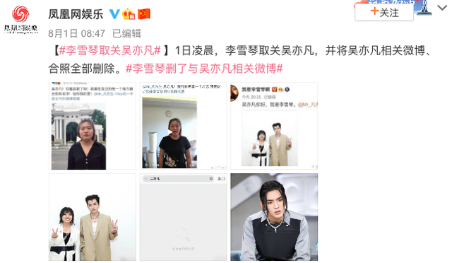 吴亦凡事件闹大后,李雪琴迅速取关,把吴亦凡的相关微博都删了。