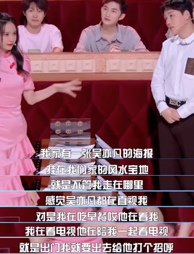 她家里贴了一张巨大的吴亦凡海报,不管她做什么,感觉吴亦凡都在陪着她。