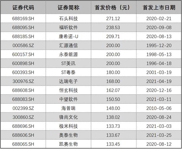 在义翘神州之前,A股发行价最高的3只新股均为近两年上市的科创板个股,分别是石头科技(271.12元)、福昕软件(238.53元)及康希诺(209.71元)。