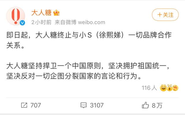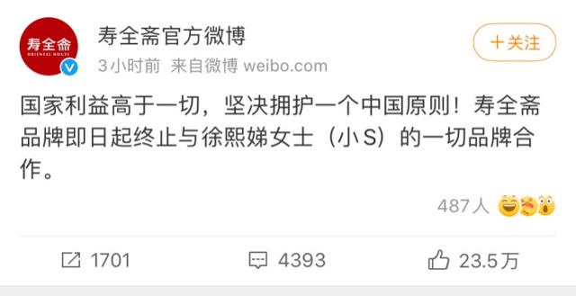 然而洗发水的合约也引发了连锁反应,很快便有更多的代言相继与小S解约,并通过社交平台公布出来,用简短的文字精准地表明我们的立场。