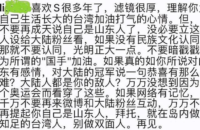 其实庆祝选手胜利无可厚非,然而小S的一则留言却引发内地网友众怒,她竟然称呼该名女选手为“国手”,并邀请所有“国手”到家中吃饭。然而也正是这个“国手”,让她成为众矢之的。