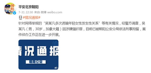 7月31日晚上,吴亦凡因涉嫌强奸罪被刑拘的一则官方通告刷爆了全网。