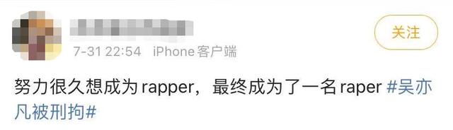 有网友感慨,吴亦凡努力了这么久想成为rapper,结果成了个raper(论文字艺术