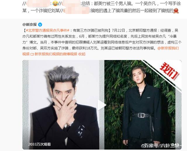 其中被传得最真也最drama的应该就是吴亦凡x诈骗犯刘某x写手徐某x都美竹的那条线了。